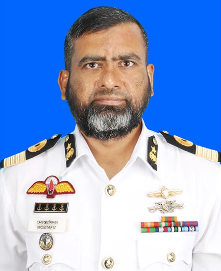 Commodore Md Mostafizur Rahman, (TAS), NGP, ndc, afwc, psc, BN was commissioned in Bangladesh Navy on 01 July 1993 in Executive Branch. The officer has served onboard various ships and establishments of Bangladesh Navy in different capacities like Executive Officer and Commanding Officer. He commanded total 7 ships of Bangladesh Navy and Coast Guard. In shore appointments, he was mainly the Officer-in-Charge of Torpedo Anti-Submarine School, instructor of Seamanship and Navigation School and the Commanding Officer of BNS SHAHEED MOAZZAM. He was also a contingent member of Bangladesh Force Riverine Unit in UNMIS and Commanding Officer of Bangladesh Force Marine Unit in UNMISS. The officer was also the Deputy Director in Naval Headquarters and a Directing Staff of Armed Forces War Course at National Defence College. Commodore Mostafiz served in Bangladesh National Cadet Corps (BNCC), Bangladesh Coast Guard and Chittagong Port Authority on deputation. For his distinguished service, he was awarded with NGP peace time medal. He obtained his M Phil degree from Bangladesh University of Professionals on Development and Strategic Studies. The officer is married and blessed with a son. Playing Squash is his passion.