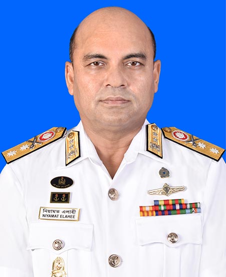 Rear Admiral Md Niyamat Elahee joined BN in 1989 and was commissioned in 1992 in the Weapon Electrical Engineering branch. After graduating from BUET in 1996 and completing the basic courses in 1996-97, he began his professional career. He was promoted to Rear Admiral on 02 September 2024 and has been serving as the Assistant Chief of Naval Staff (Materiel) since 06 May 2025. Prior to this, he held the position of Commandant, Navy Training and Doctrine Command (NATDOC) at BNS SEB.